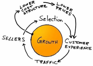With positive customer experiences, more and more shoppers come to their marketplace which in turn brings in more sellers. The more resellers that come to their marketplace, the larger the product selection will be and will lower costs and prices due to competition. More product selection and lower price attract more shoppers and the cycle repeats itself. It's a simple as that.